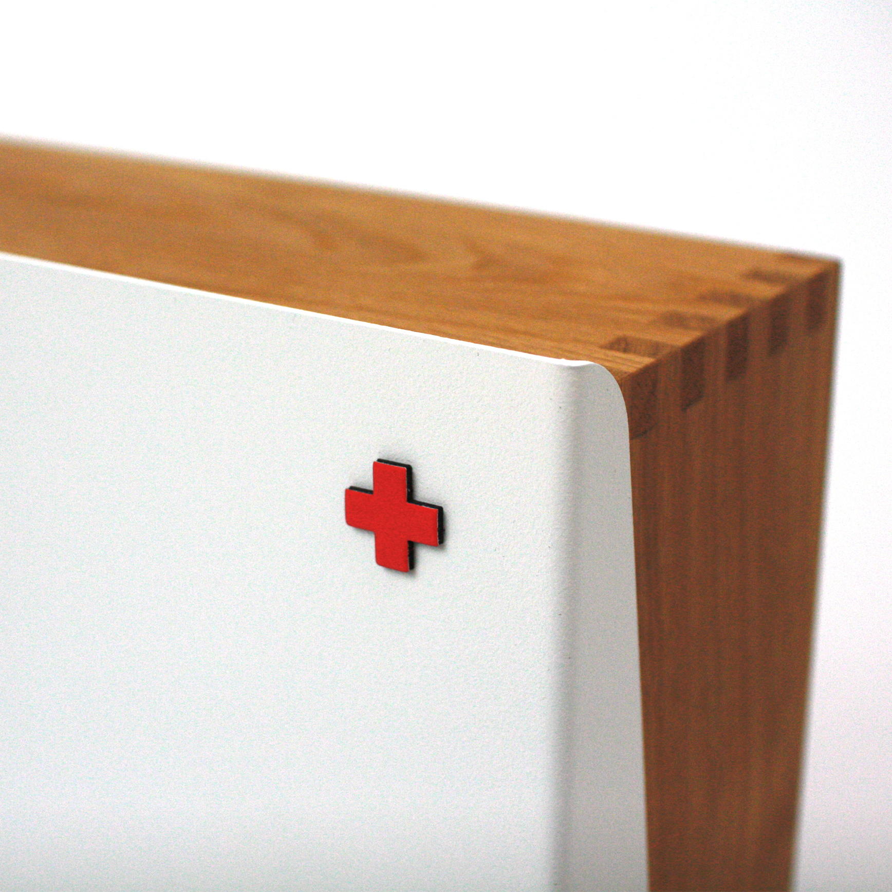 Sehr praktisch: der kleine mitgelieferte kreuzförmige Magnet. Da lässt sich das eine oder andere auch außen am Schrank befestigen.