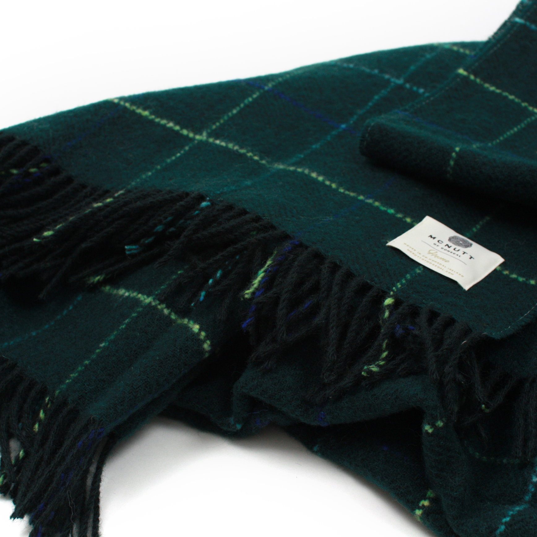 Diese Decke aus reiner Schurwolle fühlt sich etwas fester an und ist daher auch gut für ein stilvolles Picknick im Freien geeignet. Das von feinen gelben, königsblauen und türkisfarbenen Karos durchzogene dunkelgrüne Material greift die Farben der Berg- und Küstenlandschaft von Donegal auf und macht auch uns Lust auf den nächsten Sommer.